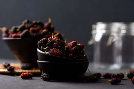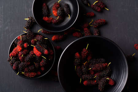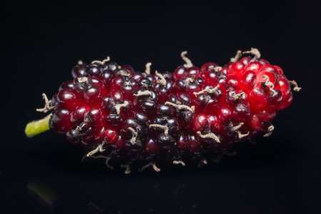 Mulberry fruit from local market on black background, Tropical fruit in spring and summer season