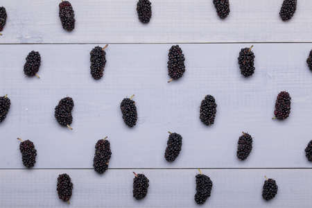 Fresh Black Mulberries in pattern, food background