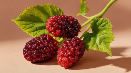Mulberry red fruits and green leaf