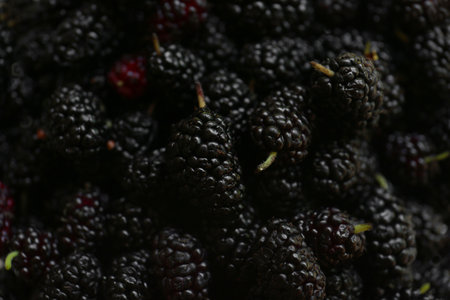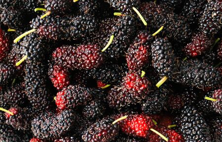 Stack of black Mulberry berry.