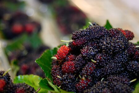 Selective focus of healthy mulberry fruit food ,mulberry in Thailand.