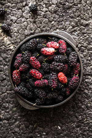 Freshly picked ripe mulberries