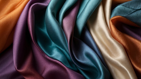 A collection of various silk fabric pieces adorned with vivid patterns, brought to life through Generative AI
