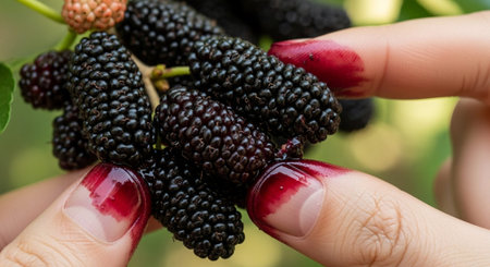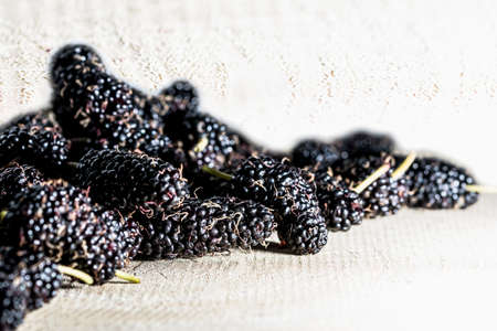 Explore the beauty of fresh ripe mulberries against a soft blurred background, highlighting the vibrant colors and textures that celebrate nature's sweetness and bounty.