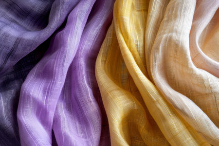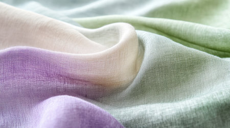 Intricate folds of linen showcase a palette of soothing colors, inviting touch and evoking warmth in a charming interior atmosphere.