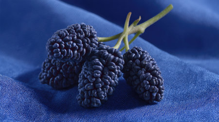 This stunning image features fresh ripe mulberries arranged artfully, showcasing their natural beauty and texture against a soft background, perfect for culinary projects.