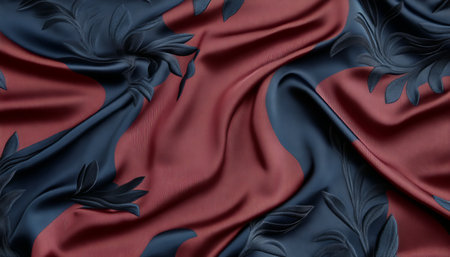 Luxurious Rich Crimson and Navy Floral Pattern Draping Soft Fabric Texture with Artistic Details