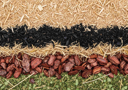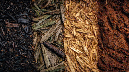 Explore the captivating textures of various types of mulch arranged in distinct sections, perfect for enhancing gardening, landscaping, and eco-friendly designs.