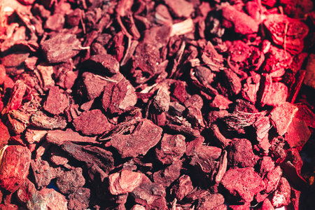 Close up of mulch in red as a background