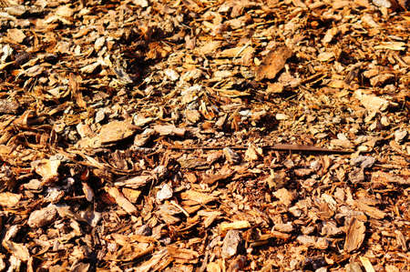 A pile of brown autumn bark Mulch for background