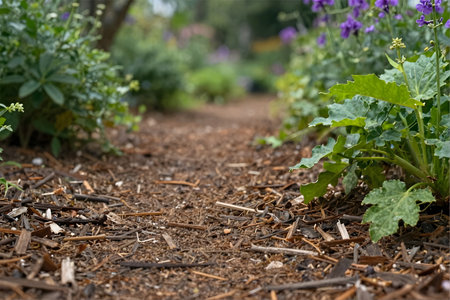 Resilient and Thriving Plant Growth Flourishing Amidst a Cozy Layer of Mulch Surrounding It