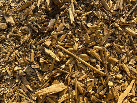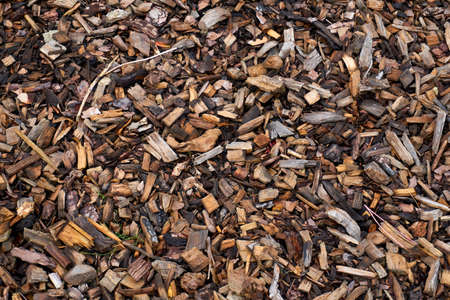 Woodchips wood mulch surface texture, top view