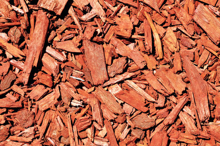 red woodchips as textured background