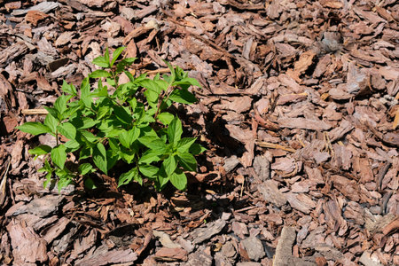 Resilient and Thriving Plant Growth Flourishing Amidst a Cozy Layer of Mulch Surrounding It