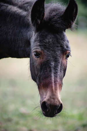 Donkey in the meadow, close-up, selective focus