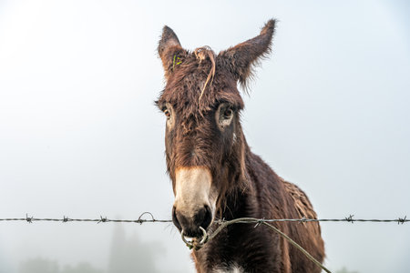 donkey on the farm in the fog
