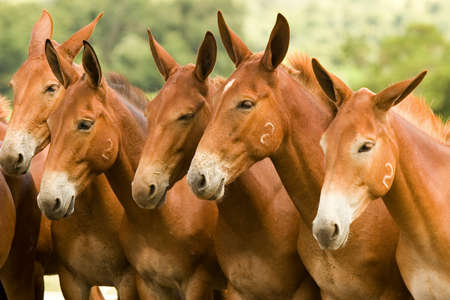 beautiful breeding mules of high standard and resistance in the farm pasture
