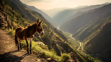 Donkey on a Mountain Trail at Sunrise