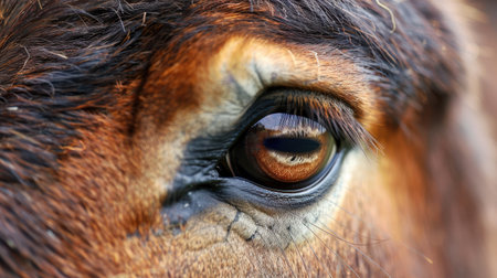 a close-up of donkey's head and eye