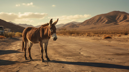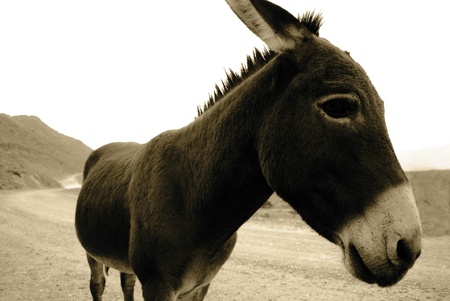 wild donkey in the wild west with brown fur