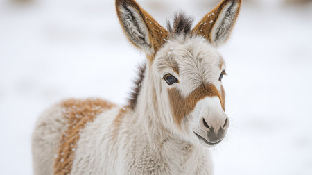 portrait of a curious donkey in winter