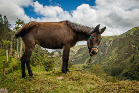 A donkey above canyon on Quilotoa loop trail, Ecuador