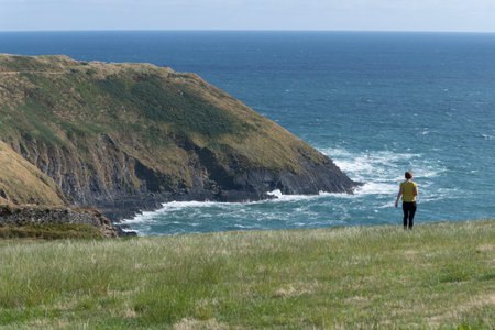 Woman on the coast, Old Head of Kinsale, Kinsale, County Cork, Ireland