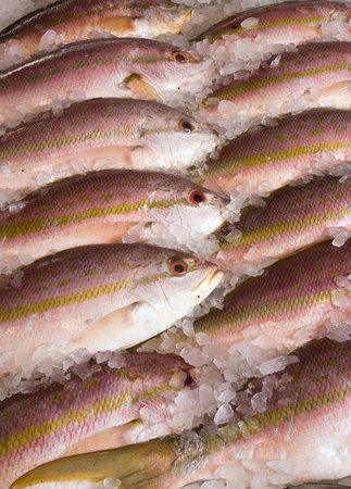 Snapper fish for retailsale in local market. Freshly caught fishes. Fishing shop. Fresh fishes in a market.