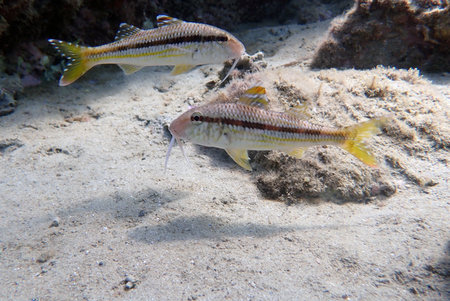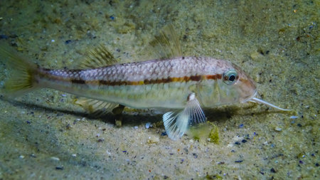 Red mullet (Mullus barbatus) resting at night on the sand, Black Sea
