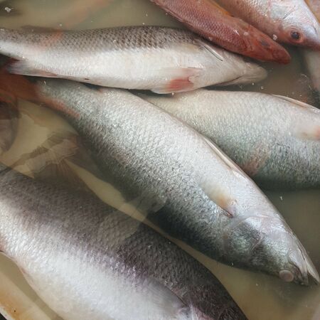 Raw Fresh Seafood Fishes on Market Detailed Photo