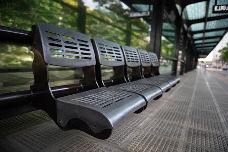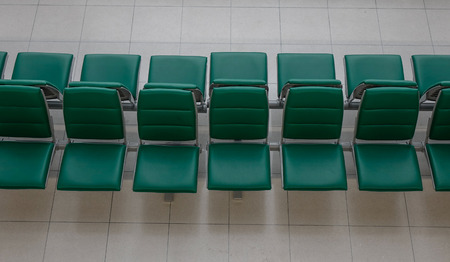 Empty black chairs stand in the foyer of a doctor or lawyer office. The concept of the end of the day or event