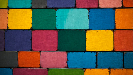 bold color blocks form a pattern that repeats on a wall, created with generative ai