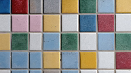 A mosaic wall, its tiles a spectrum of hues, captured in a moment of simplicity, akin to a visual montage