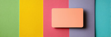 A gift card mockup positioned on a lively, colorful backdrop, featuring a harmonious blend of yellow, green, pink, and purple surfaces arranged neatly.