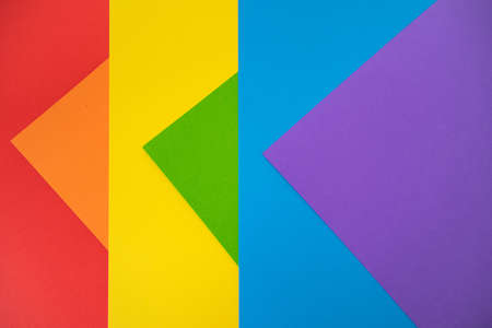 Geometric shapes with colored paper in the colors of the rainbow
