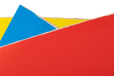 Abstract color papers geometry flat lay composition background with blue, yellow and red color tones