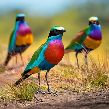 Vibrant exotic bird with colorful feathers and striking profile.