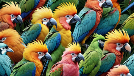 Vibrant Group of Parrots with Colorful Feathers