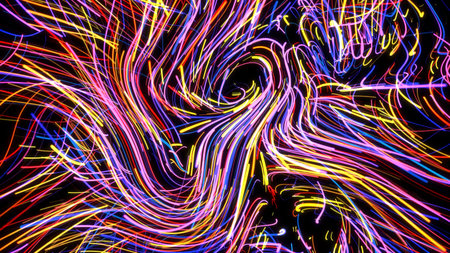 Bright showing abstract swirling lines of bright neon colors creating a dynamic light trail effect. resolution...
