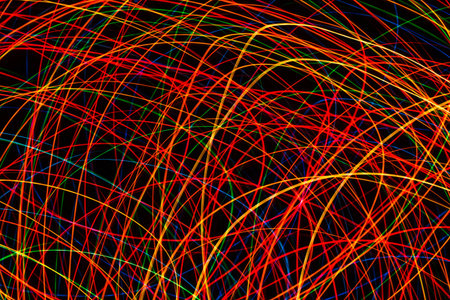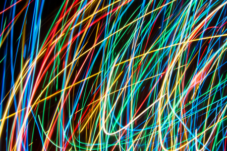 abstract background with long exposure of colorful light streaks on black background