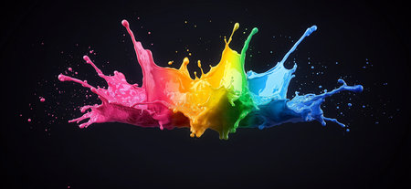 Bright paint explosion on dark background dynamic splash design