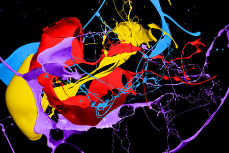 Exploding vibrant colorful paint splash isolated against black backdrop