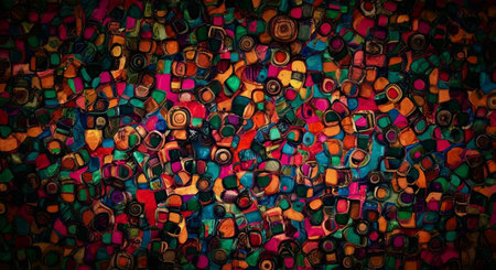 This vibrant abstract artwork features geometric shapes in bold colors, perfect for creative projects. Ideal as a background or for artistic inspiration, its dynamic pattern captivates the viewer's eye.