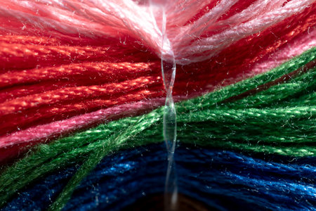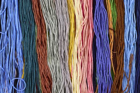 Colorful embroidery thread for use as a pattern or background in graphics.
