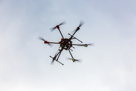 Kijkduin, the Netherlands - March 24, 2017: low flying drone UAV