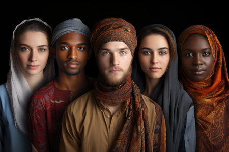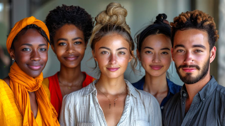 A captivating image showcasing a group of diverse young adults standing together, representing a mix of different ethnic backgrounds, emphasizing unity and modern diversity.