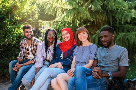 Happy young diverse friends having fun hanging out together - Youth people millennial generation concept