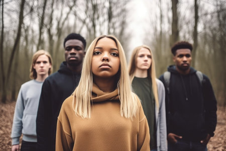A captivating image showcasing a group of diverse young adults standing together, representing a mix of different ethnic backgrounds, emphasizing unity and modern diversity.