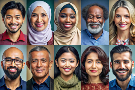 Celebrating diversity in smiling faces from various backgrounds and cultures