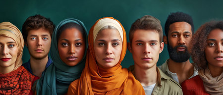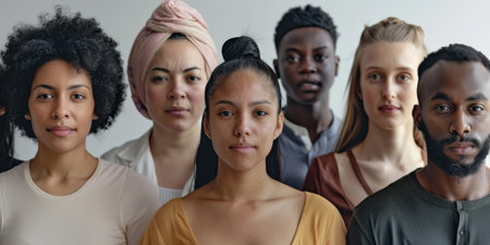 Face portrait of diverse people together looking straight. Multiracial concept. distinct generative AI image.